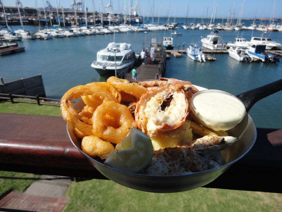 Kalastuspäivän päätteeksi satamassa kalastusseuran paviljongilla tarjottiin tosi mahtava ateria. Itse sai tilata alkupalan, pää- ja jälkiruoan, tämä kuului kalastukseen. Esim. Alkupalaksi kermaisia etanoita, päämenuksi oikeita simpukoita, jättikatkarapuja, mustekalaa ja kahta kalalajia frideerattuna ja jälkiruoaksi jäätelöä karamelli- ja suklaakastikkeella. Ja ruokajuomaksi tietenkin olutta ja Giniä tonicilla.