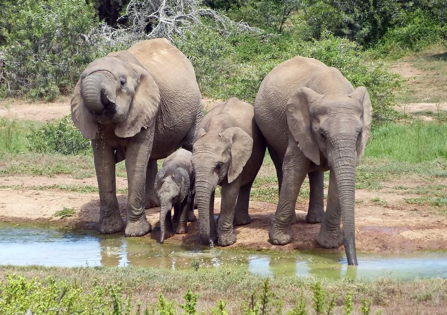 Mieleenpainuvimmat muistot jäivät Afrikan monimuotoisesta eläinmaailmasta. Teimme kokopäiväretken Addon elefanttien kansallispuistoon. Opas kertoi, että siirtomaavallan aikana sata vuotta sitten elefantit tapettiin alueelta lähes kokonaan, koska ne tuhosivat uudisasukkaiden viljelyksiä. 2 miljoonasta elefantista jäi jäljelle 16. Näille perustettiin sitten 140 000 ha laajuinen aidattu suojelualue. Nyt elefantteja on puistossa 850 kpl. Puistossa elävät myös muut alueelle kuuluvat villieläimet. Katselimme ja kuvasimme niitä auton ikkunasta. Illaksi menimme vielä yksityiselle eläinsafarille. Siellä katselimme avoimesta jeepistä leijonia 4 metrin päästä. Opas kertoi, etteivät ne olleet nyt nälkäisiä. Näimme lisäksi mm. kirahveja, sarvikuonoja, puhveleita, pahkasikoja, isoja kilpikonnia, seeproja ja monia erilaisia antilooppeja.