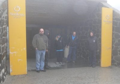Sunnuntaina lähdimme käymään Nordkappissa. Sää oli erittäin huono, tihkusadetta ja sumua. Näkyvyyskin oli todella kehno, eipä nähnyt oikeastaan mitään. Mutta sisällä hotellissa oli supervideonäyttämö, josta näkyi koko Nordkappin alueen luonto kaikkina neljänä vuoden aikana. Kannatti kuitenkin käydä! Syötiin ja ostettiin tuliaisia kotiin viemisiksi ja sitten paluumatkalle kotia päin. Ensimmäinen käyntini täällä, mutta ei taatusti viimeinen. Ikimuistoinen reissu.