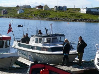 Lähdimme matkaan Ivalosta kahdella autolla. Otimme Inarista jäitä mukaan ja Kaamasesta viimeinen matkustaja kyytiin. Porukka kasassa – Teija, Vesa, Petri, Jari, Ilkka ja Pirjo. Aurinkoisessa säässä matka jatkui Karigasniemeen, jossa täydennettiin ruokavarastoa. Tavattiin myös tuttuja, joilta saatiin viimeisimmät neuvot ja sitten rajan yli Norjan puolelle. Tunnelma autoissa oli positiivisen jännittynyt. Vesan hehkuttaessa Jäämeren runsaista kalasaaliista, me ekakertalaiset olimme hiukan epäileviä. Vihdoin saavuimme perille pieneen kalastajakylään Rebvågiin, hotelli löytyi ihan laiturin vierestä, huoneet saatiin omakotitalon yläkerrasta, vain sauna puuttui. Täällähän oli vielä yötön yö.