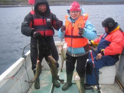 Perjantaiaamu oli aurinkoinen ja tyyni, kun lähdimme vuokraamaan venettä. Tiukan testiajon jälkeen Korhosen Jari sai kapteenin paperit ja näin päästiin lähtemään merelle. Saimme arvostelevia katseita ja kommentteja kokeneilta Jäämeren kalastajilta, jotka luottivat vain paikalliseen oppaaseen varmistaakseen varman kalasaaliin. Me kuitenkin luotimme kapteeni Korhosen taitoon sekä vaistoon ja suuntasimme Jäämeren aavalle ulapalle kohti ensimmäistä oletettua ottipaikkaa. Se oli lähempänä kuin luulimmekaan, noin viiden kilometrin päässä. No, niin! Juksat veteen ja eiku nykimään. Eipä tullut mitään, vaikka viereisessä veneessä kaksi pappaa veteli kaksin käsin kalaa merestä. Kiikarit esiin ja vakoilemaan. Taisi meillä olla liian isot vieheet, vaihto vanhoihin topyihin auttoi sekä paikallisen ystävällisen kalastajan neuvot. Jopas alkoi vavat notkumaan ja rissat parkumaan, meillä oli viisikin seitiä yhdessä vavassa kerralla. Eipä ehtinyt paljon valokuvia ottamaan, kun seitiä oli ilmassa, lattialla ja joka paikassa. Teija papitti ja minä vieressä verestin ja heittelin kaloja laatikoihin, jotka alkoivatkin täyttyä tuota pikaa.