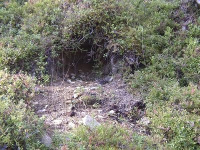 Kävelimme kivikkoista vaaranrinnettä vastaiselle jonkin matkaa ja käännyimme takaisin kohti autoa. Noustessamme vaaranrinnettä ylemmäs näkyi selviä merkkejä karhun oleskelusta alueella. Oli yrittänyt kaivaa pesää, mutta tainnut jäädä kesken. Olimme lähes korkeimmalla kohdalla, kun koira rupesi yllättäen haukkumaan vastatuulessa arviolta 300-400m:n päässä meistä. Hirvi varmaan, tuumasin kavereille. Kuuntelimme hetken haukkua, joka tuntui loittonevan. Kävelin reippaasti lähellä olevan pienen kumpareen päälle, toiset jäivät jälkeen ja kääntyivät hieman vasemmalle notkelmaan. Kku pentu Aatu jäi Aten ja Kaitsun luokse.